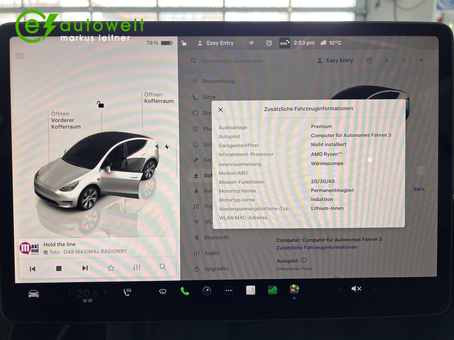 erzlich Willkommen bei der e-autowelt Markus Leitner, ihrem Gebrauchtwagenexperten für Elektrofahrzeuge. Hier finden Sie die Kompetenz und Unterstützung für einen erfolgreichen Umstieg auf das erste eigene vollelektrische Auto. Gerne können wir Ihnen dazu auch vor Ort durchgeführte Batteriestests von Aviloo (Führender Anbieter für Akkutests, wird auch von ADAC und TÜV benutzt), Wallboxen, Finanzierungen, Inzahlungnahmen (auch Verbrenner) oder Transporte anbieten. Gerne können Sie uns auf Instagram #eautowelt folgen.Unsere Autos können bei jedem Wetter besichtigt werden. Alle Fahrzeuge stehen trocken und geschützt in einer Halle. Dementsprechend bitten wir um eine schriftliche oder telefonische Terminvereinbarung (auch per WhatsApp unter der auf dem Bild angegebenen Nummer), um Ihnen die Fahrzeuge ausgiebig und in Ruhe präsentieren zu können. Für mehr Sicherheit beim Kauf eines Elektroautos wird jedes Auto Probe gefahren und eventuelle Mängel beseitigt. Der Akku dieses Stromers hat noch Werksgarantie bis 09/2030 bzw. 192.000 km und das Gesamtfahrzeug bis 09/2026 bzw. 80.000 km.Hier bieten wir Ihnen ein Tesla Model Y in der Long-Range-Variante mit Allrad an. Das Fahrzeug wurde in Pearl White Multi Coat lackiert und mit 19" Felgen bestückt. Dieser Tesla besitzt alle, für Elektrofahrzeuge wichtige Ausstattungsmerkmale:- Sitzheizung vorne und hinten- Lenkradheizung- Wärmepumpe- Schnellladen Wechselstrom mehrphasig- Schnellladen Gleichstrom- Ladekabel Schuko- Ladekabel Typ 2 Mode 3