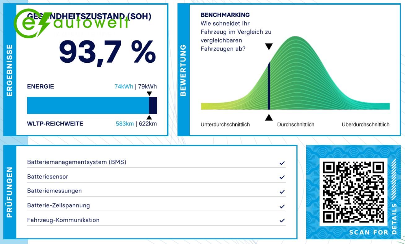 Lade-und Verbrauchsdaten von ev-database.org:Durchschnittliche Reichweite 445 kmLadegeschwindigkeit 690 km/h (Durchschnittliche Ladegeschwindigkeit beim Heben des Ladestandes von 10% auf 80%, dient der Vergleichbarkeit)Schnelladen von 10 - 80% (von - 348 km an CCS-Ladepunkt): ca. 27 minReale Reichweite zwischen 320 - 645 kmStadt - Winter 430 kmAutobahn - Winter 320 kmKombiniert - Winter 375 kmStadt - Sommer 645 kmAutobahn - Sommer 415 kmKombiniert - Sommer 515 kmBeispiele für reale Reichweiten in unterschiedlichen Witterungsbedingungen. Winter: 'Worst-Case' basierend auf -10°C Außentemperatur und aktiver Heizung. Sommer: 'Best-Case' basierend auf 23°C Außentemperatur und deaktivierter Klimaanlage. Auf der Autobahn wird eine konstante Geschwindigkeit von 110 km/h angenommen. Die tatsächliche Reichweite hängt von einer Vielzahl von Faktoren ab wie Geschwindigkeit, Fahrverhalten, Witterungs- und Fahrstreckenbedingungen.Alle Angaben ohne Gewähr.
