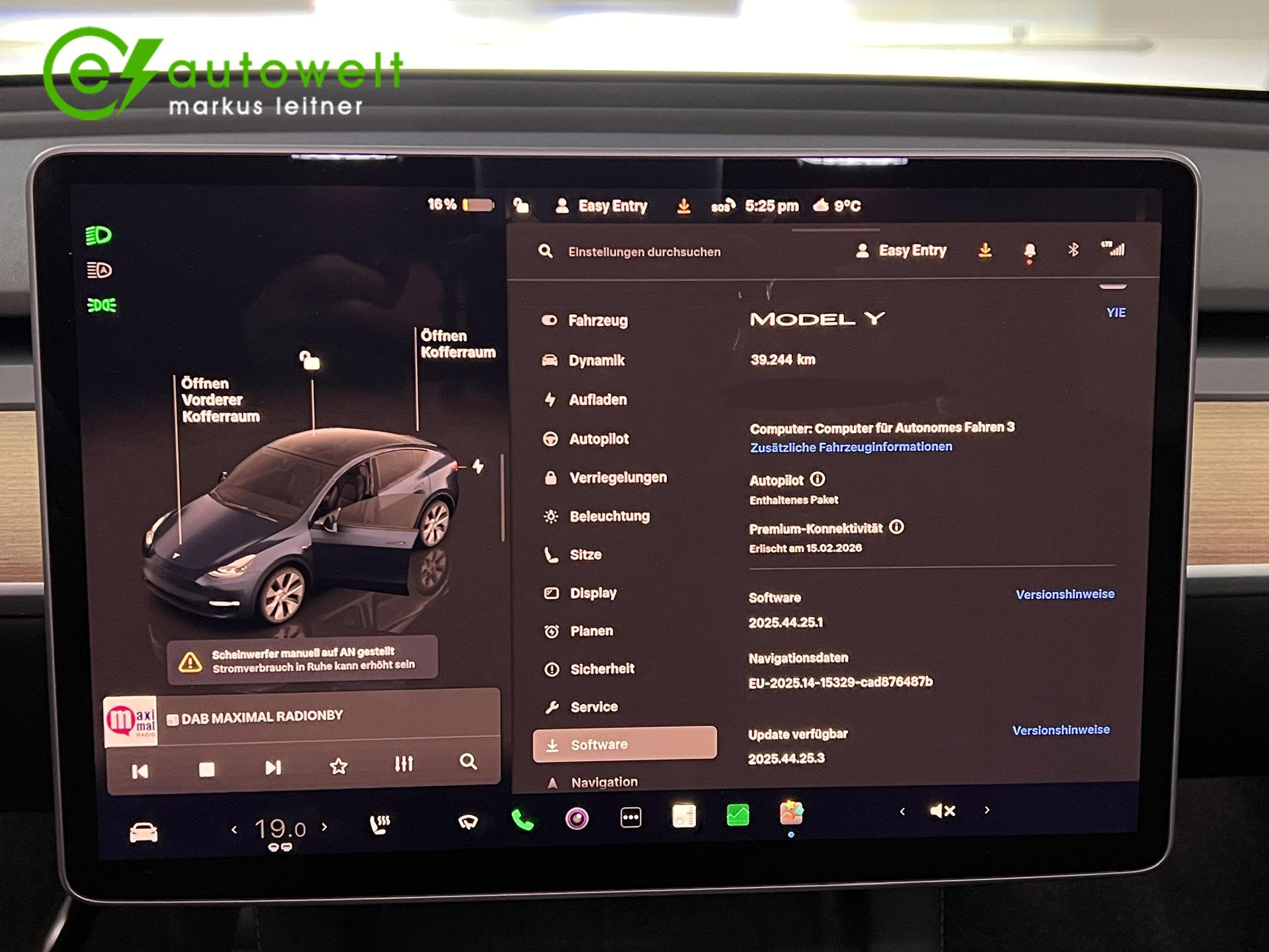 Für mehr Sicherheit beim Kauf eines Elektroautos wird jedes Auto Probe gefahren, eventuelle Mängel beseitigt und 1 Jahr Garantie gegeben. Der Akku dieses Stromers hat noch Werksgarantie bis 11/2028 bzw. 192.000 km.Hier bieten wir Ihnen ein Tesla Model Y in der Standard-Variante mit effizienten Heckantrieb an. Das Fahrzeug wurde in Solid Black lackiert und mit 19" Felgen bestückt.Dieser Tesla besitzt alle, für Elektrofahrzeuge wichtige Ausstattungsmerkmale:- Sitzheizung vorne und hinten- Lenkradheizung- Wärmepumpe- Schnellladen Wechselstrom mehrphasig- Schnellladen Gleichstrom- Ladekabel Schuko- Ladekabel Typ 2 Mode 3
