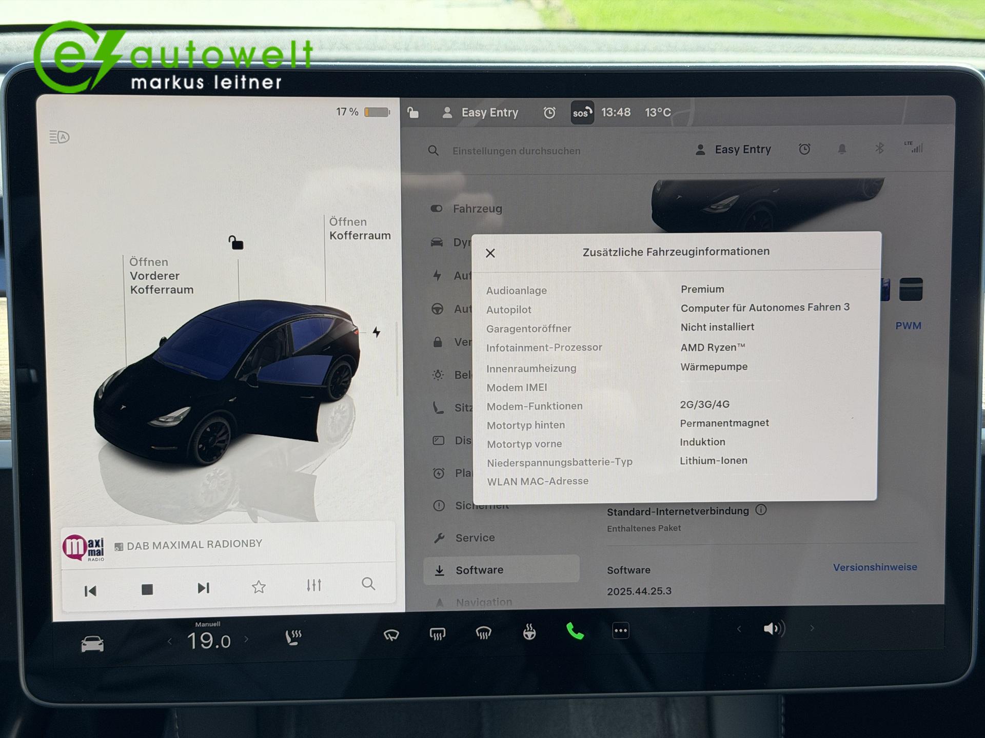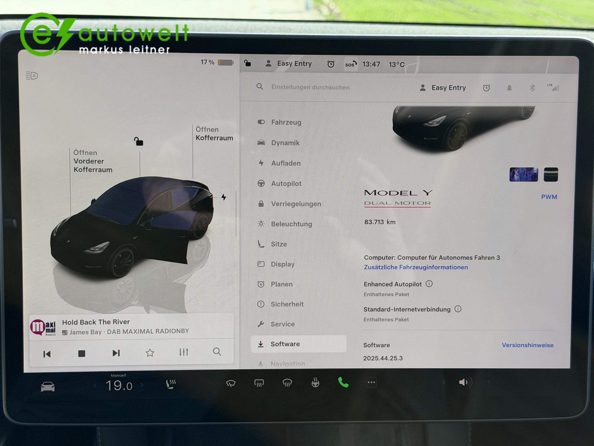 Für mehr Sicherheit beim Kauf eines Elektroautos wird jedes Auto geprüft und eventuelle Mängel beseitigt. Der Akku dieses Stromers hat noch Werksgarantie bis 08/2030 bzw. 192.000 km.Hier bieten wir Ihnen ein Tesla Model Y in der Performance-Variante mit Allrad an. Das Fahrzeug wurde in Solid Black lackiert und mit 21" Felgen bestückt. Der Innenraum wurde dabei ebenfalls in Schwarz gehalten.Dieser Tesla besitzt alle, für Elektrofahrzeuge wichtige Ausstattungsmerkmale:- Sitzheizung vorne und hinten- Lenkradheizung- Wärmepumpe- Schnellladen Wechselstrom mehrphasig- Schnellladen Gleichstrom- Ladekabel Schuko- Ladekabel Typ 2 Mode 3Zusätzlich verfügt das e-Auto noch über folgende Ausstattungsmerkmale: